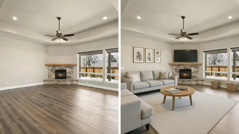 Take photos of your home and instantly see a fully remodeled version, new flooring, different walls, and more.